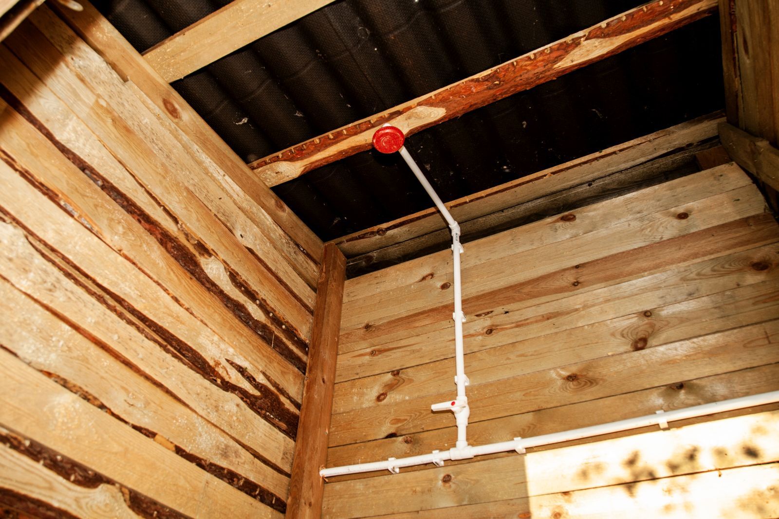 Индивидуальный санузел расположен рядом с домиком. К нему ведёт деревянный настил. Сан.узлы оборудованы душевой кабиной, раковиной и туалетом.