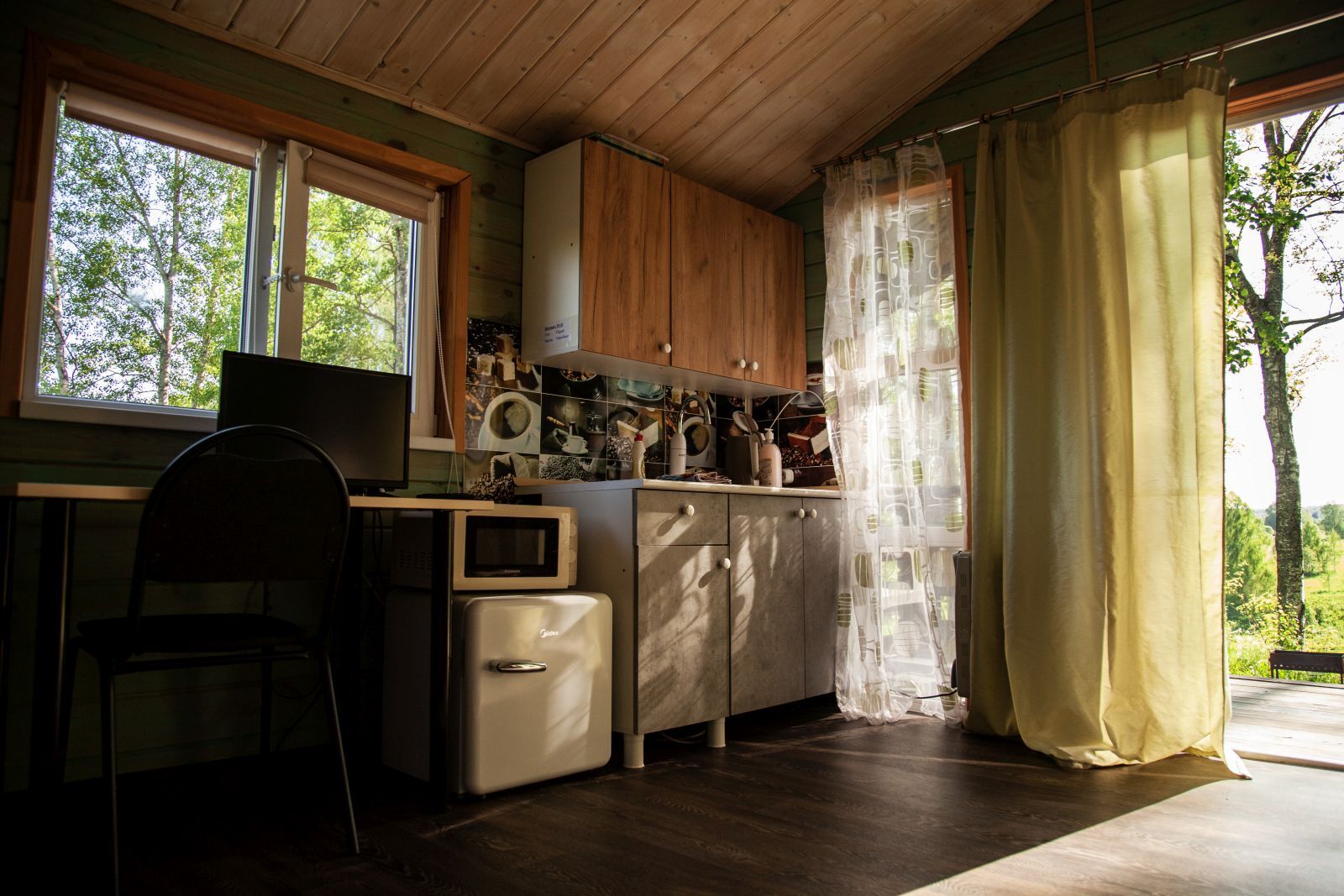 В домике есть всё необходимое для отдыха после лесной прогулки, длительного автопробега, круглогодичного проживания: